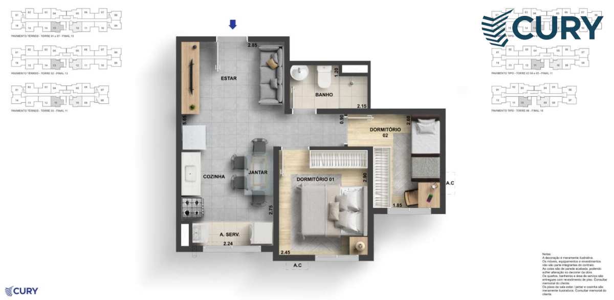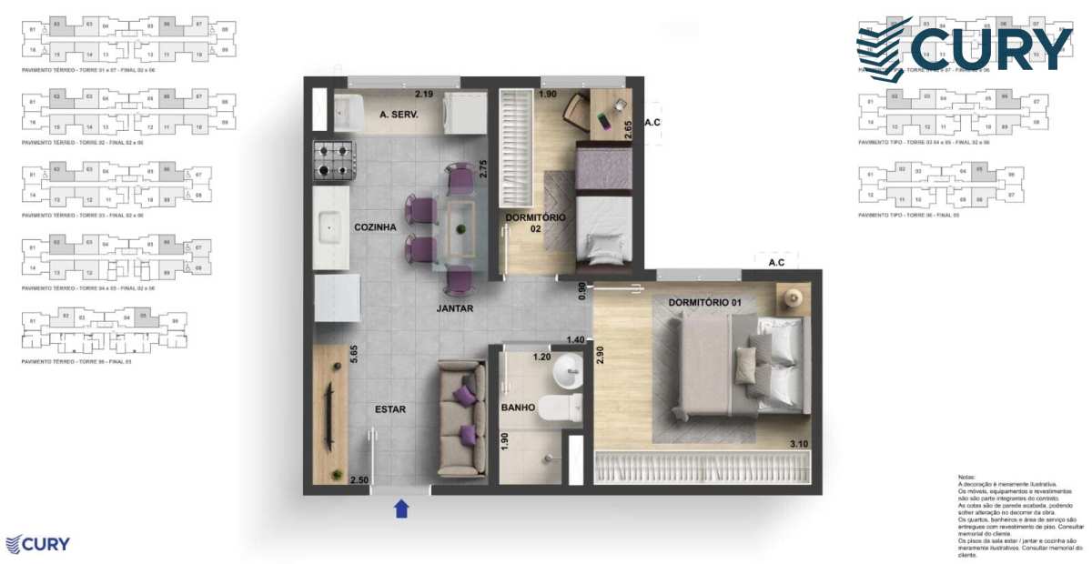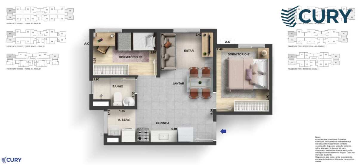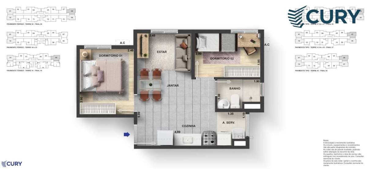 Tipologias: Apartamentos de 1 e 2 quartos, com diversas opções de plantas que atendem a diferentes perfis e necessidades.