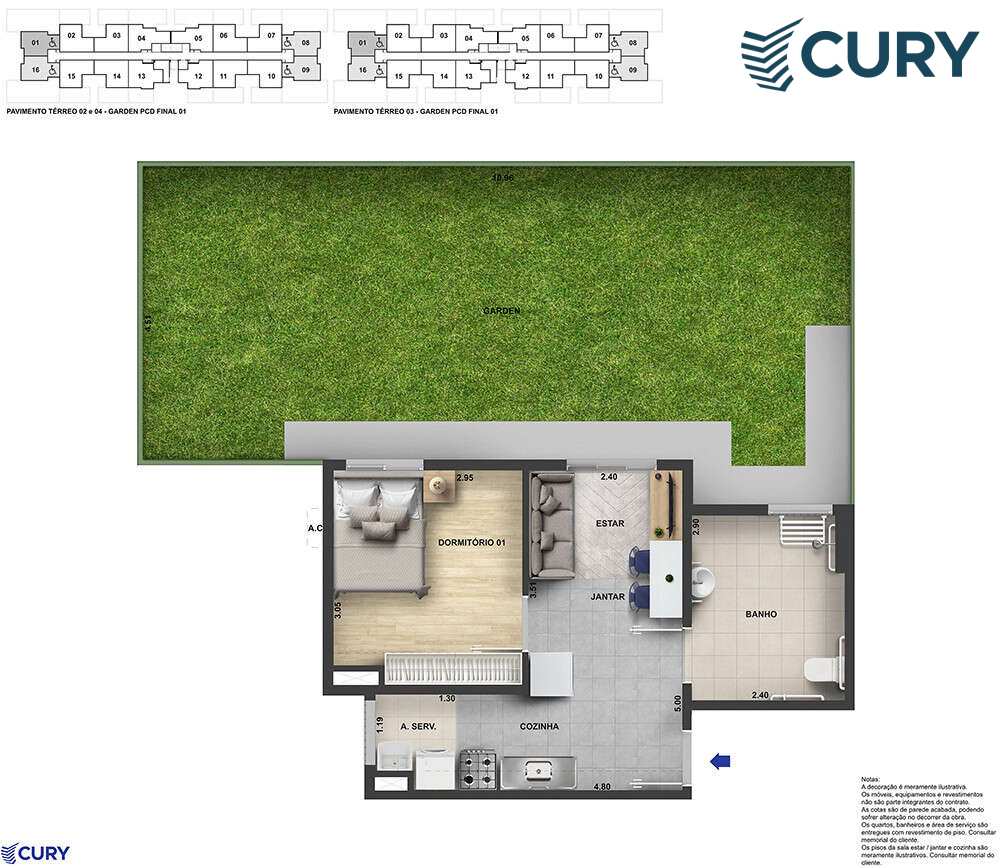 Apartamentos de 1 e 2 quartos, com opções de garden e um amplo lazer completo para toda a família!